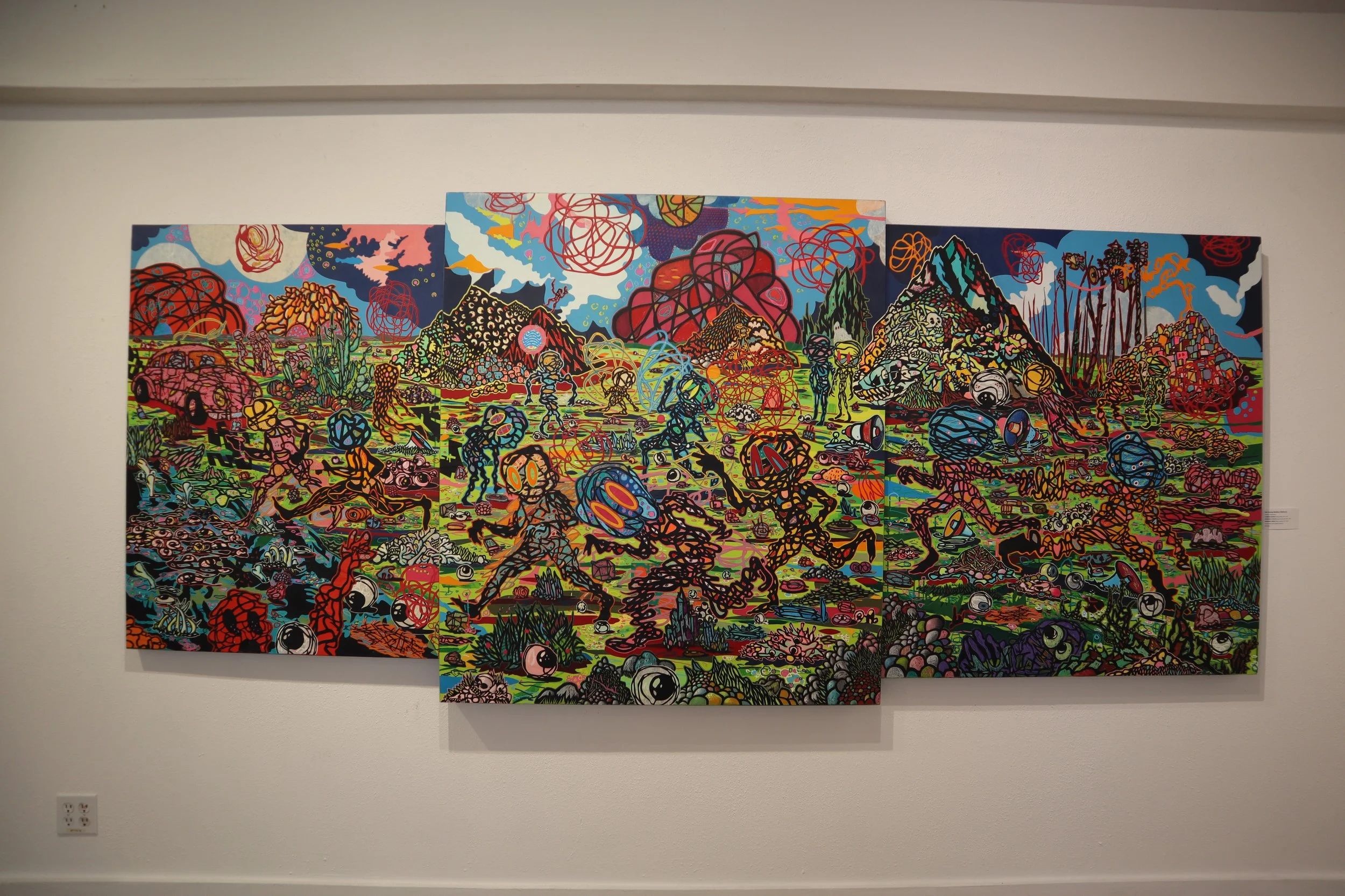 Jeremy’s largest piece - cut paper and colored pencil on custom built wood panels. Total insanity.